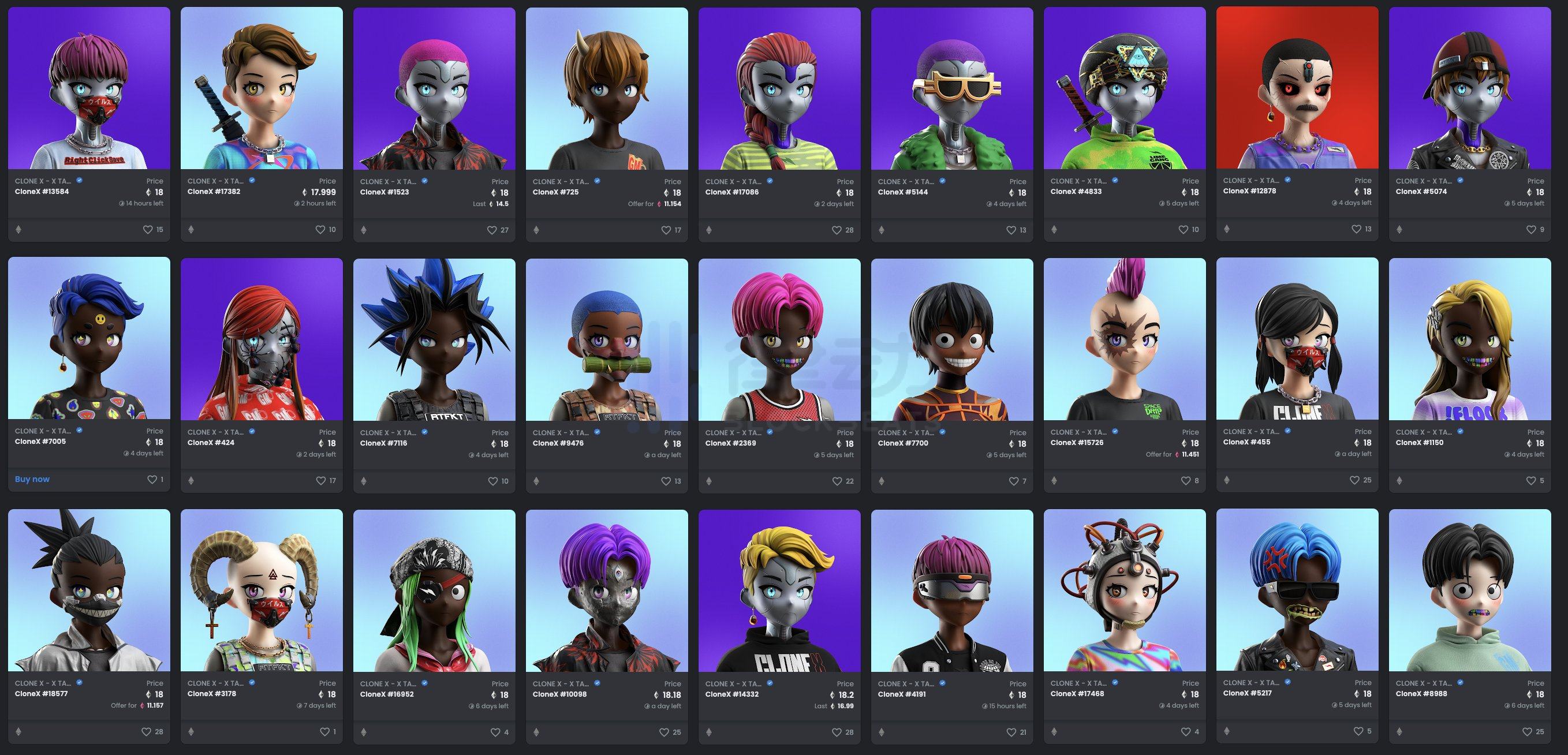 有时在某个特定的价位,会有很多出售的 NFT。比如 CloneX 在 18 ETH 这个位置就有大约 20 个,这能让你了解一个项目在什么价格可能存在向上的阻力。