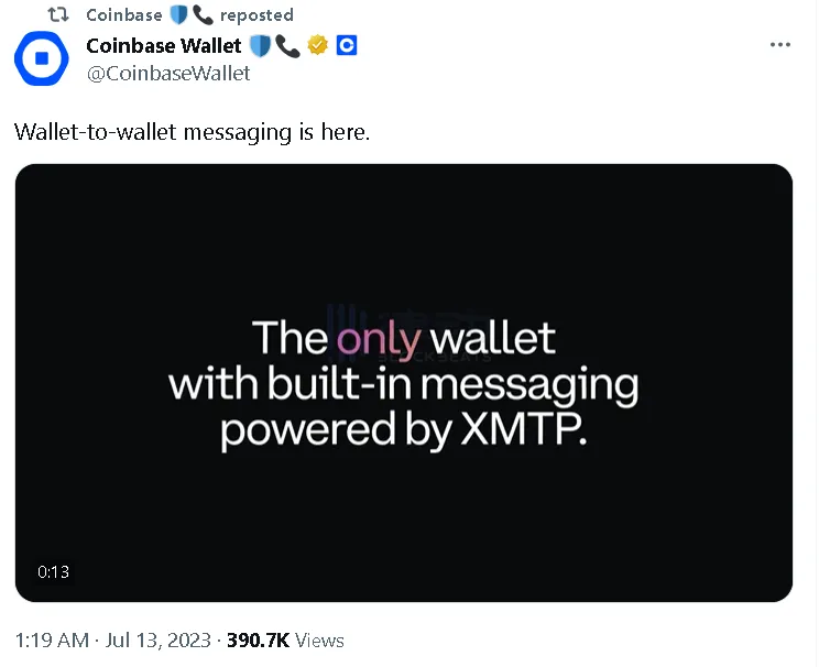 这种质疑声在 2 个多月前就已出现,当时 Coinbase Wallet 官推发布视频宣布与开源通讯网络 XMTP 集成,合作开启钱包地址之间的即时通讯。不少加密爱好者对此提出疑问:「聊天内容加密了吗?」「Coinbase Wallet 的技术将如何脱颖而出,以及消息安全的保证是什么?」