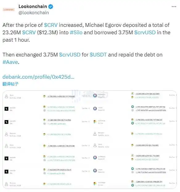 5. Curve 创始人将 2326 万枚 CRV 转入 Silo,借出 crvUSD