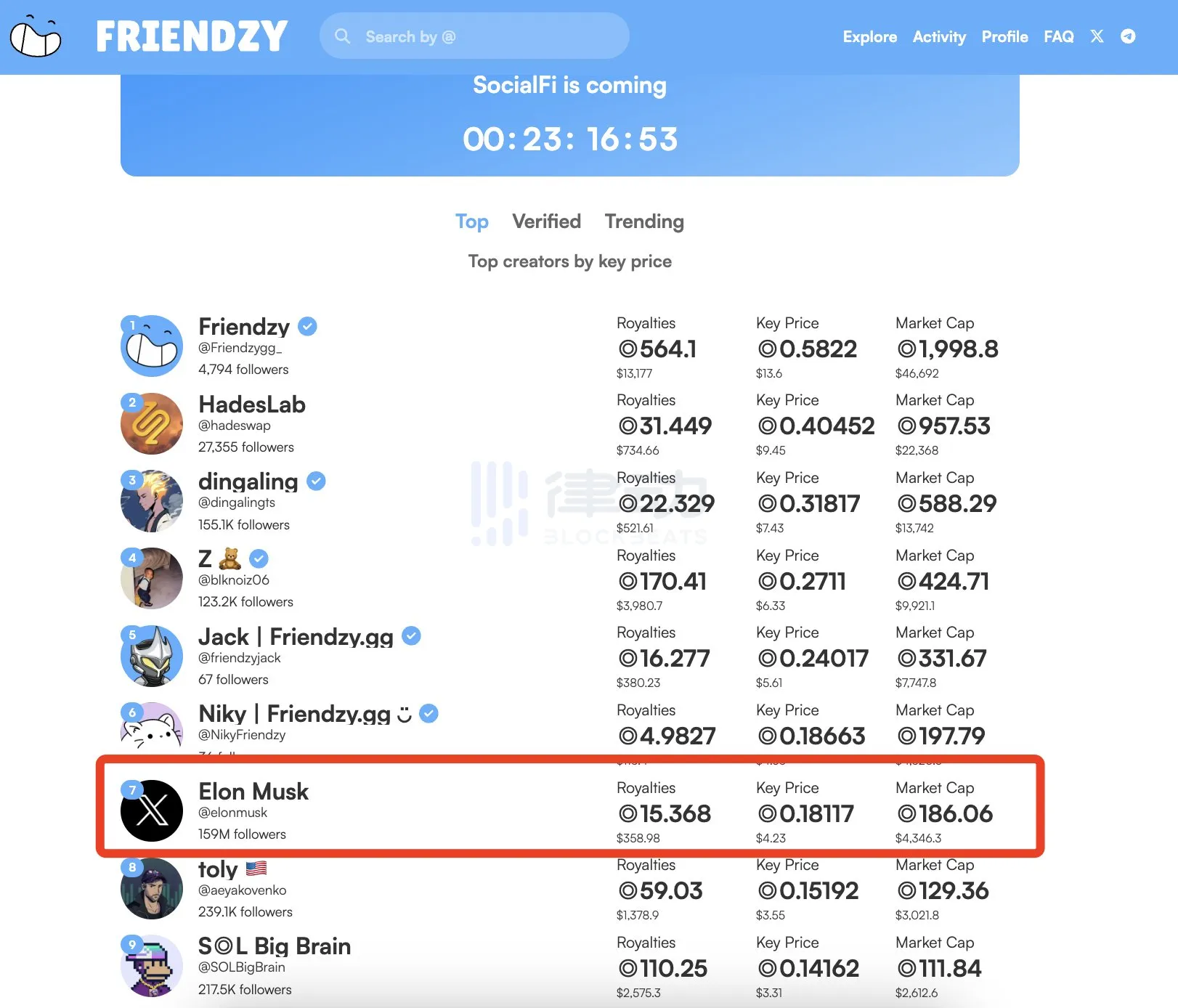 事实上,加密行业中 FT 的玩法和模式并非首次出现。早在 2021 年,Basis 创始人 Nader Al-Naji 就曾发布去中心化社交产品 BitClout。彼时 BitClout 因不经用户同意就将用户资料放到其平台,引发了社区的强烈不满。本次@jason_chen998所批判的 FREINDZY 也采用了类似的套路。这也是为什么连马斯克的账号都能在其平台上出现。
