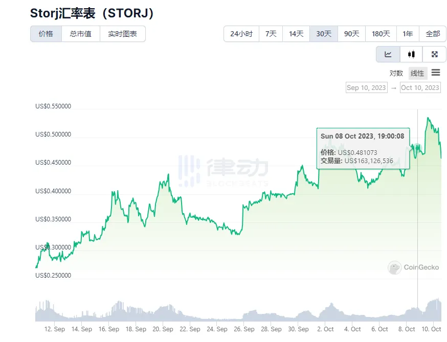 · STORJ 价格近一个月涨幅超 100%,团队大量存币
