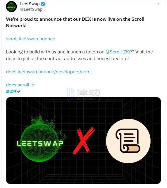 据官方消息,Base 链上的去中心化交易平台 LeetSwap 已在 Scroll Network 上线。