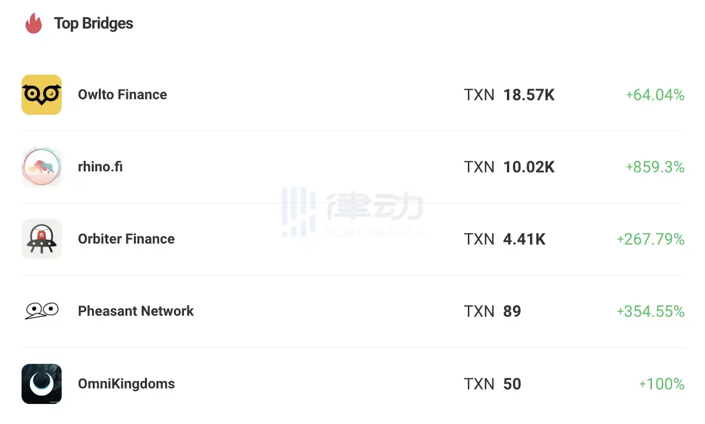 2. 跨链桥 Owlto Finance 在 Scroll 网络上交易笔数突破 1.85 万次,暂列生态项目榜首位;