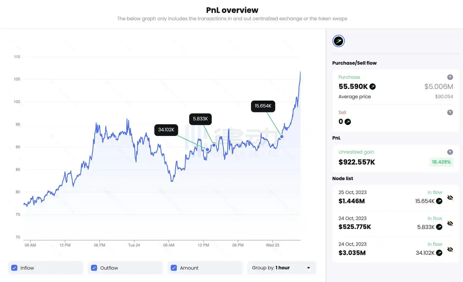 过去 24 小时,3 地址共计从 Binance 提出 55,590 枚 TRB,价值超 500 万美元
