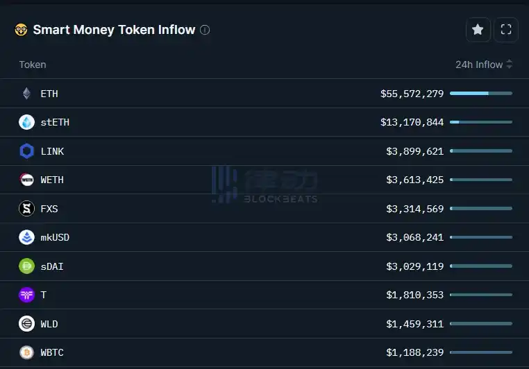 Nansen Smart Money 24 小时流入榜:LINK、FXS、T、WLD 位居前列