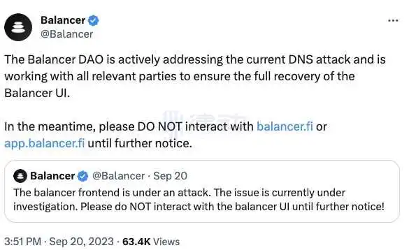 而近两月,DNS 攻击事件又频繁了起来,9 月 20 日,Balancer 遭 DNS 劫持攻击,损失达 23.8 万美元。
