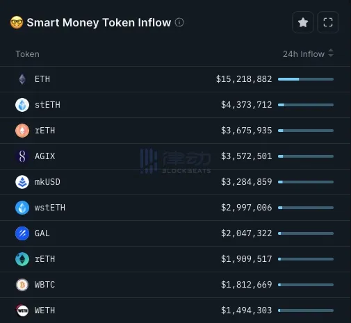 Smart Money 24 小时流入榜:AGIX、GAL 位居前列