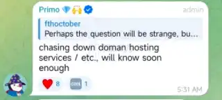 Bryan(Primo)补充表示,团队正在追查域名托管服务情况,结果将很快知晓。