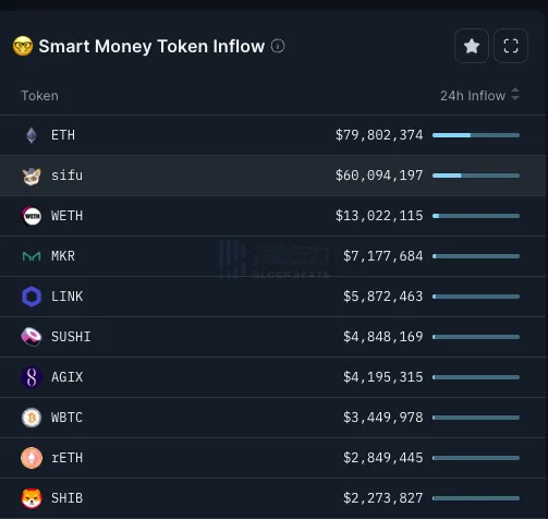 Smart Money 24 小时流入榜:MKR、LINK、SUSHI 位居前列