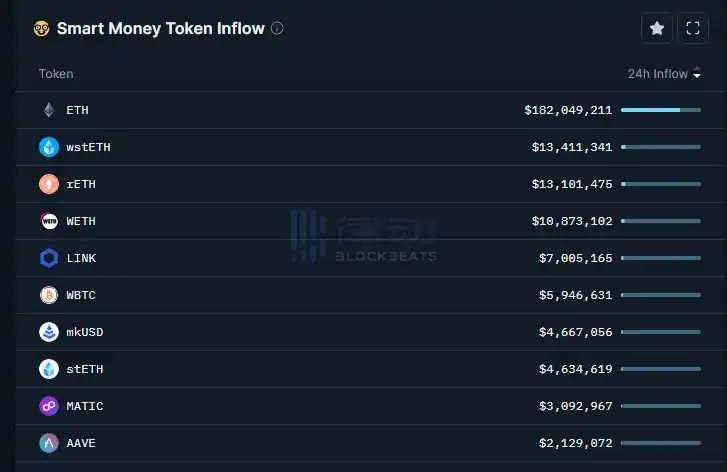 1.LINK、MATIC、AAVE 位居 Smart Money 24 小时流入榜单前列;