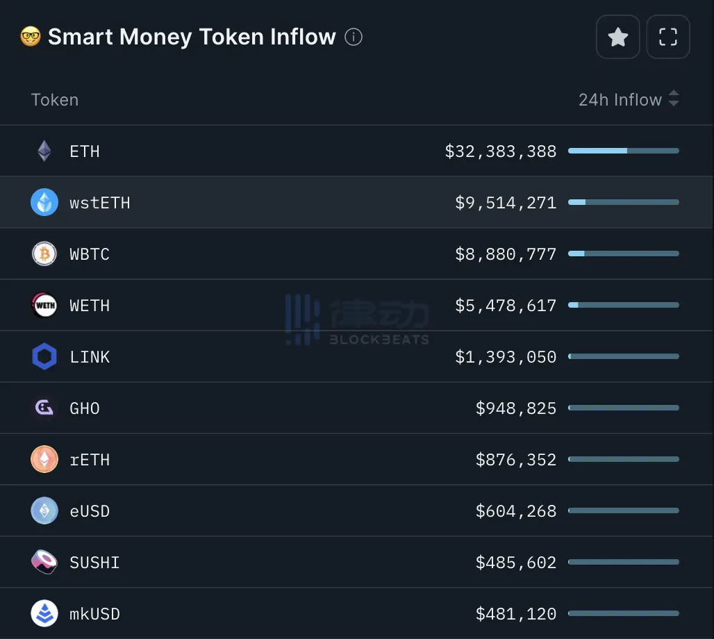 LINK、SUSHI 位居 Smart Money 24 小时流入榜单前列