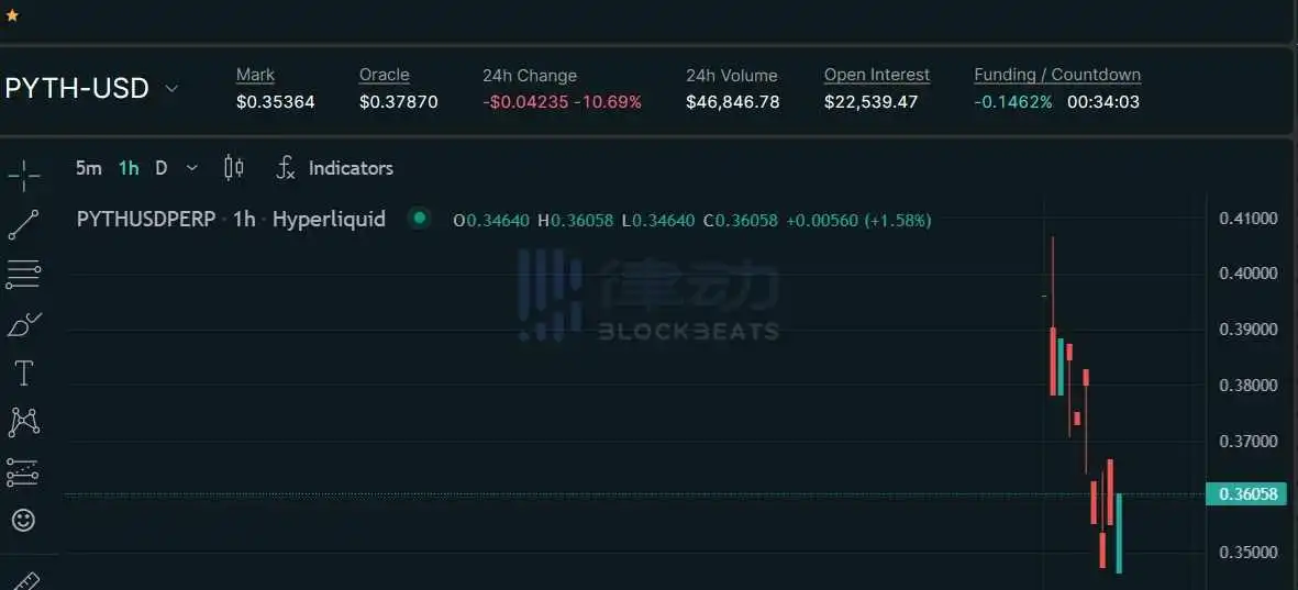 Hyperliquid 平台 PYTH 永续合约现报价 0.353 美元