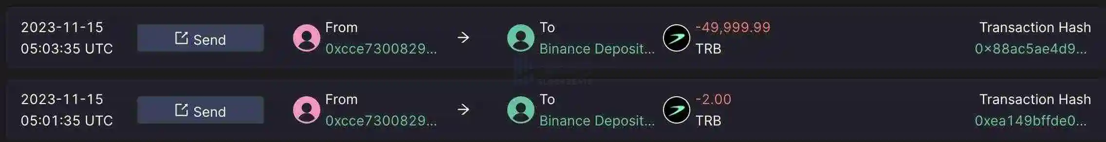 TRB 最大持币地址将 5 万枚 TRB 转至 Binance