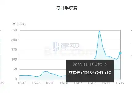 据 BTC.com 数据,昨日比特币全网手续费超 134 枚 BTC,相较于近期观测高点(11 月 9 日/248.61 枚 BTC)回落达 46.1%。