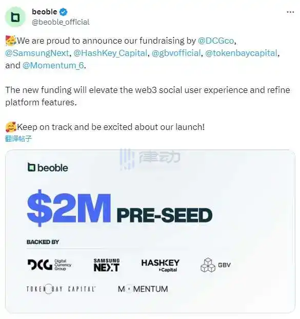 Web3 社交协议 beoble 完成 200 万美元 Pre-Seed 轮融资,DCG 等参投