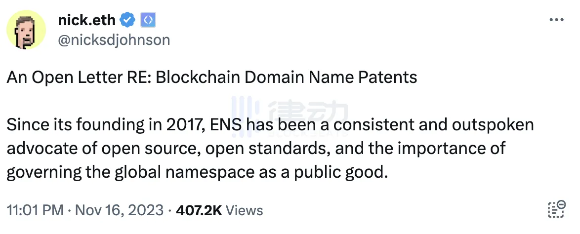 Nick 指出,如果做不到这一点,ENS 随时准备挑战这项专利。