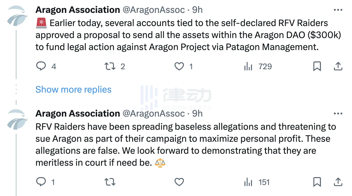 · Aragon DAO:诉讼旨在对 AA 成员追责,保护投资者资金