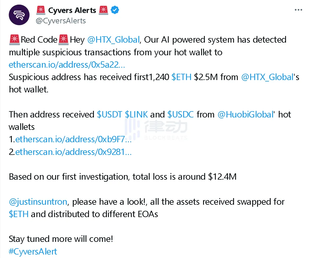 相关阅读:《事件新进展:HTX 遭攻击,黑客归还约 820 万美元资金》