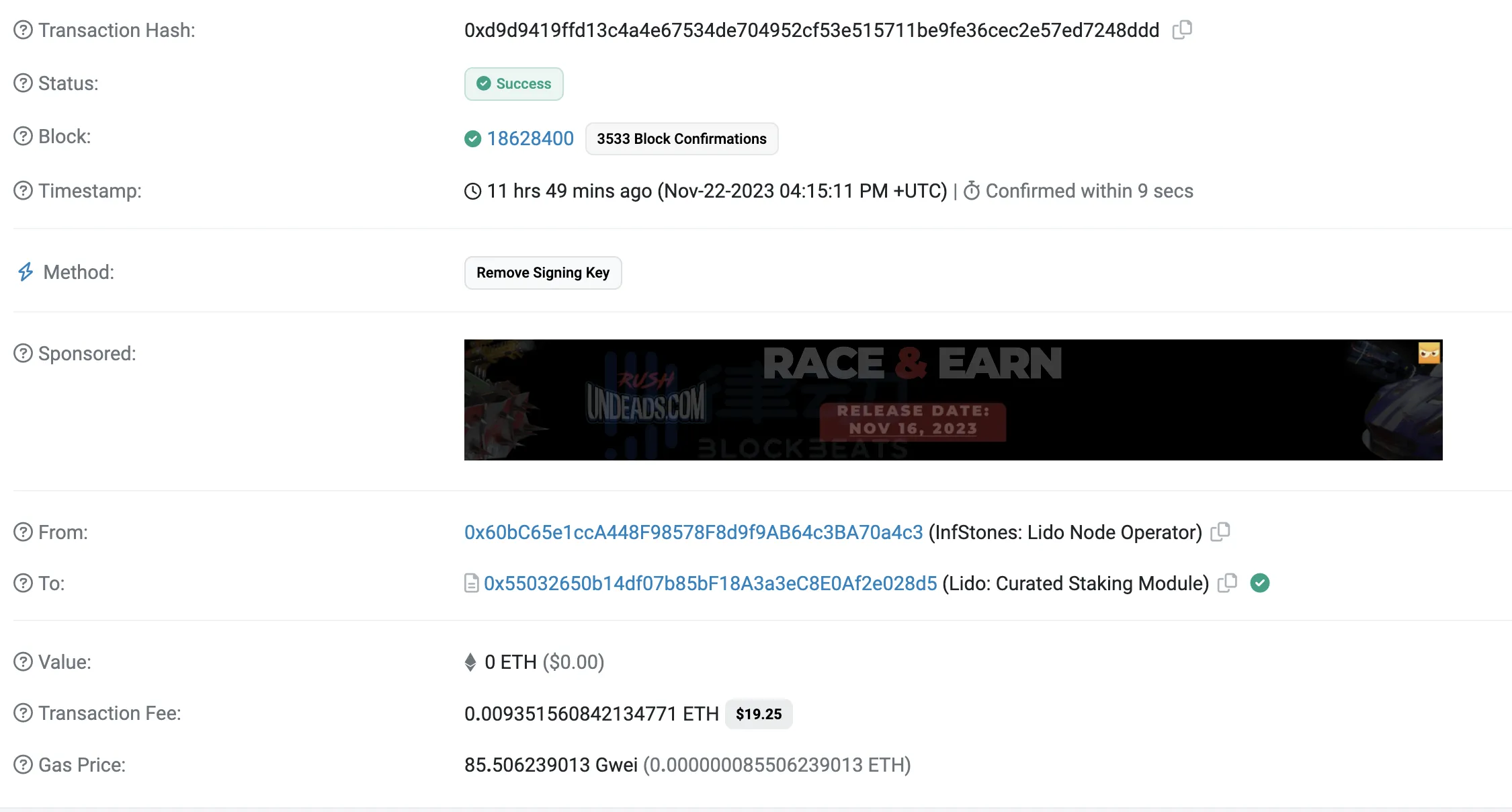 与此同时,InfStones 团队已经进行了一项链上交易,将其经过审查的验证器限制重置为当前活跃的验证器数量(即防止任何新的存款可能被路由到 InfStones),特别是当前的 10,001 个验证器。