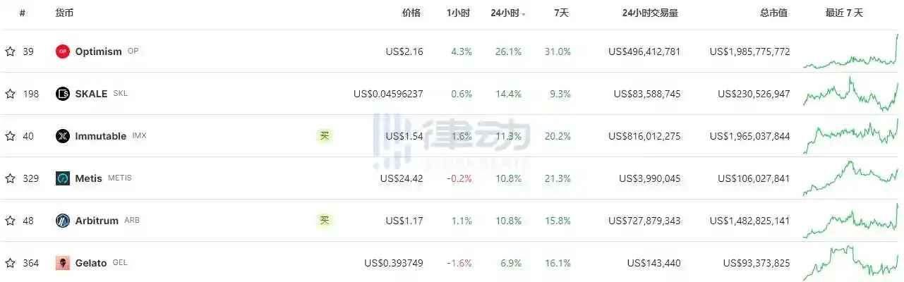 Layer 2 版块普涨,OP 24 小时涨超 26% 领涨