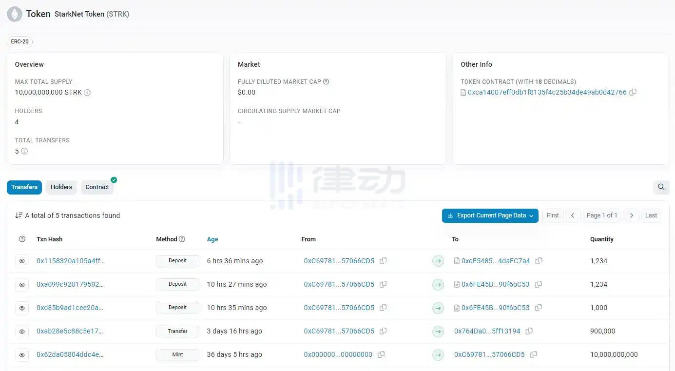 Sepolia 测试网链上记录显示,Starknet 疑似正在该测试网上试验 L1 至 L2 的 STRK 跨链转移。 数小时之前,以太坊 Sepolia 测试网上与主网 STRK 合约相同(0xca14 开头)的 STRK 测试币出现了多笔转账,其中一笔 1234 枚 STRK 测试币的转账疑似是在将 STRK 测试币从 L1 跨链至 L2。 Starknet Sepolia 测试网数据显示,上述交易确认几分钟后,该测试网上 0x0137 开头的地址收到 1234 枚 STRK 测试币。 BlockBeats 此前报道,今日早些时候,Starknet v0.13.0 已在测试网上线。