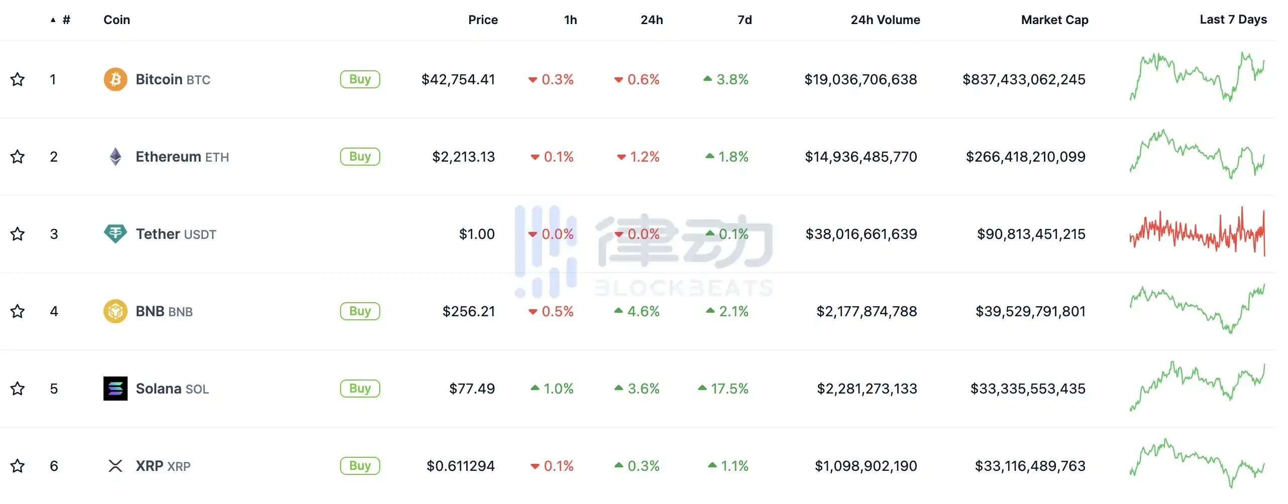 据 OKX 行情数据,比特币短时突破 43,000 美元,现报价 42961.14 美元,24 小时涨幅 0.06%。