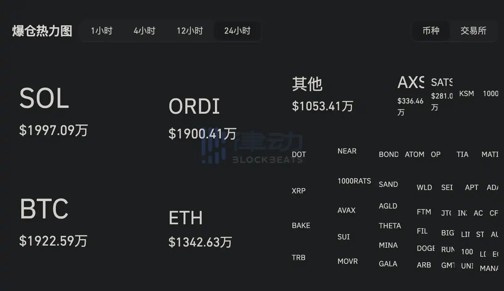 近 24 小时 SOL 爆仓 1997 万美元,超过 BTC