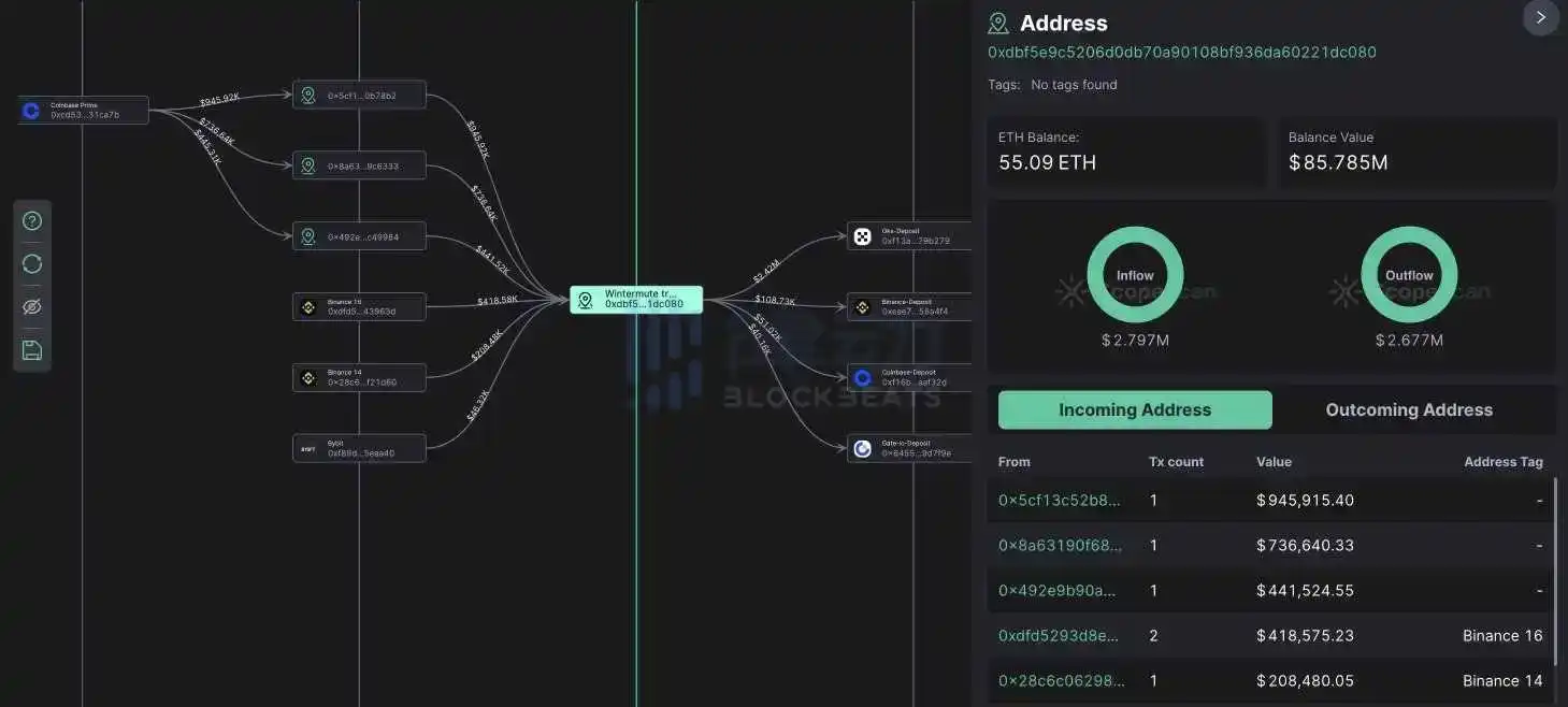 数据:Wintermute 今日已向 CEX 转入约 260 万美元 BLUR