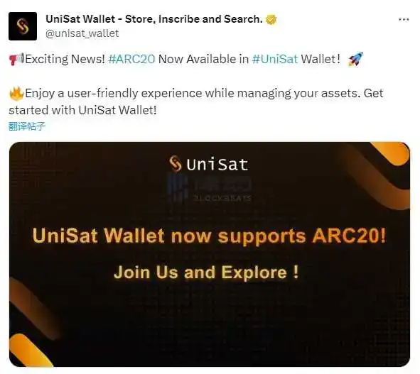 12 月 26 日,据官方消息,UniSat 钱包宣布已支持 ARC20 资产。UniSat 表示,为了增强安全性,目前使用基于官方索引的备份解决方案,以确保与最新版本中的官方行为完全一致。在未来的更新中,将过渡到 UniSat Atomicals Indexer 以提高服务性能。