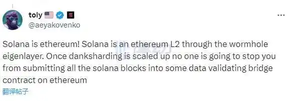 Solana 联创:Solana 可通过 Wormhole EigenLayer 作为以太坊 L2