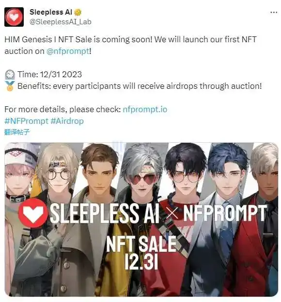 2.Sleepless AI:HIM 创世 NFT 将在 NFP 平台拍卖,每位参与者都可获得空投;