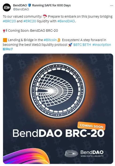 BendDAO BRC-20 即将上线,为比特币生态提供借贷和跨链桥服务