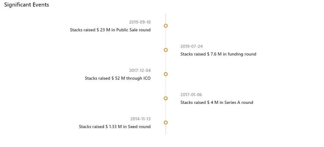 Stacks 公链由 Muneeb Ali 和 Ryan Shea 在 2013 年共同创立,最初名为 Blockstack,后来更名为 Hiro Systems PBC。该项目的一大特点:在 SEC 的监管下根据 Reg A 进行融资,是一个符合 SEC 监管标准的区块链项目。截至今日,Stacks 已完成 5 轮融资,总金额达到 8800 万美元(如下图)。