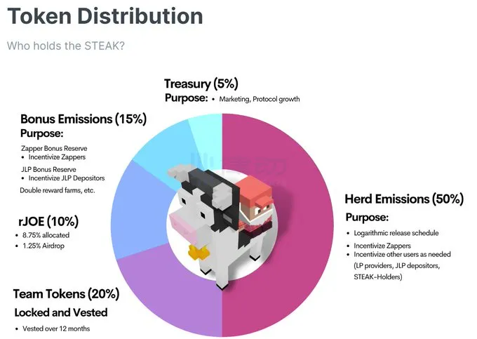 此外,STEAK 跟随 JOE 的脚步成为全链可替代代币 (OFT)。这意味着供应分布在 Avalanche、Arbitrum、BNB Chain 以及未来 JoeV2 最有可能扩展的任何其他地方。