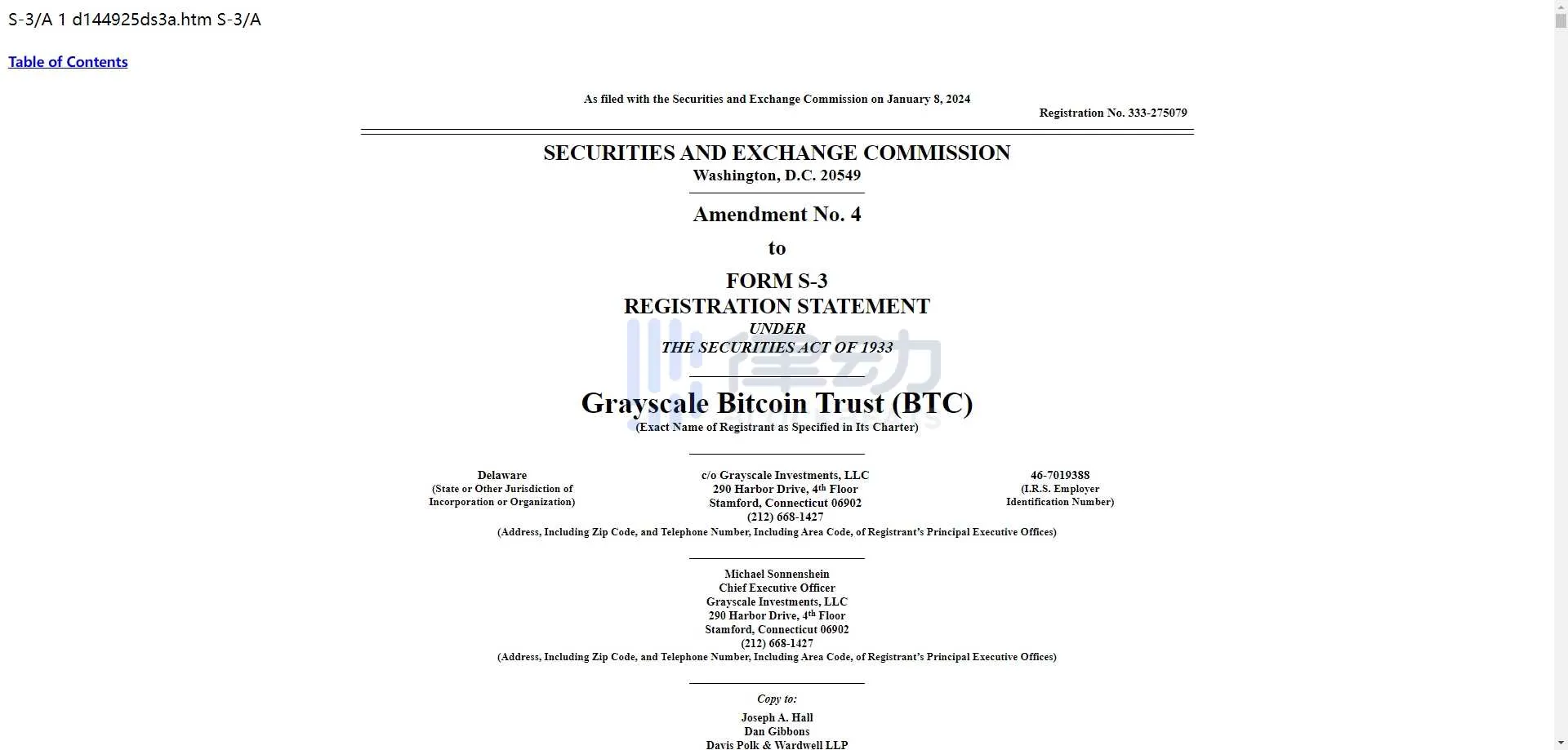 BlockBeats 消息,1 月 8 日,据 SEC 官网,灰度提交其现货比特币 ETF S-3 申请的更新版本,其 ETF 费用为 1.5%。