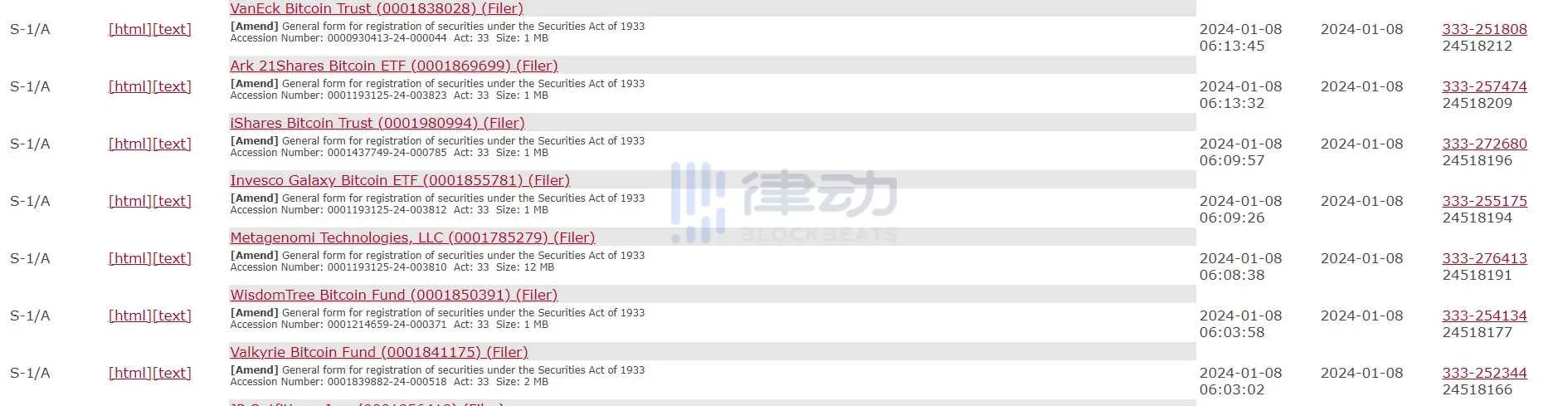 美 SEC 确认收到多家比特币现货 ETF 发行商的拟议规则变更修正案