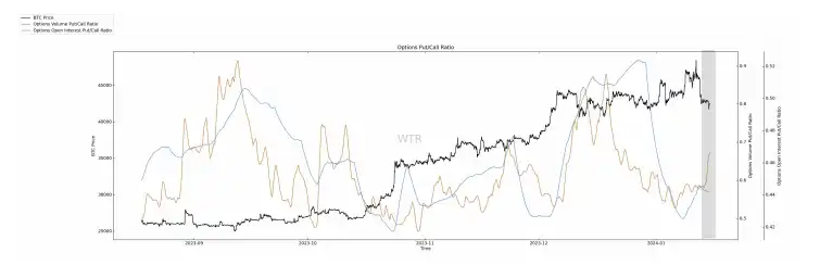 ETF 消息面过后衍生品成交量有再次回到低位,表明当前衍生品交易者在等待下⼀次变盘时刻。