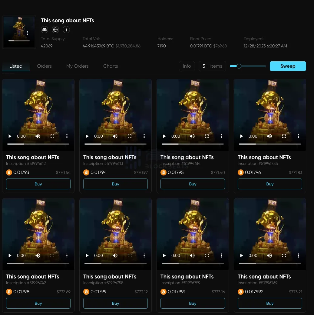 不管是公链,还是协议还是生态,meme 文化都是一个能帮助其快速出圈的捷径,也是建立社区非常快的方式之一。对 BRC-420 来说,This Song about NFT 正扮演这个角色,社区内更多称之为「马斯克音乐盒」。