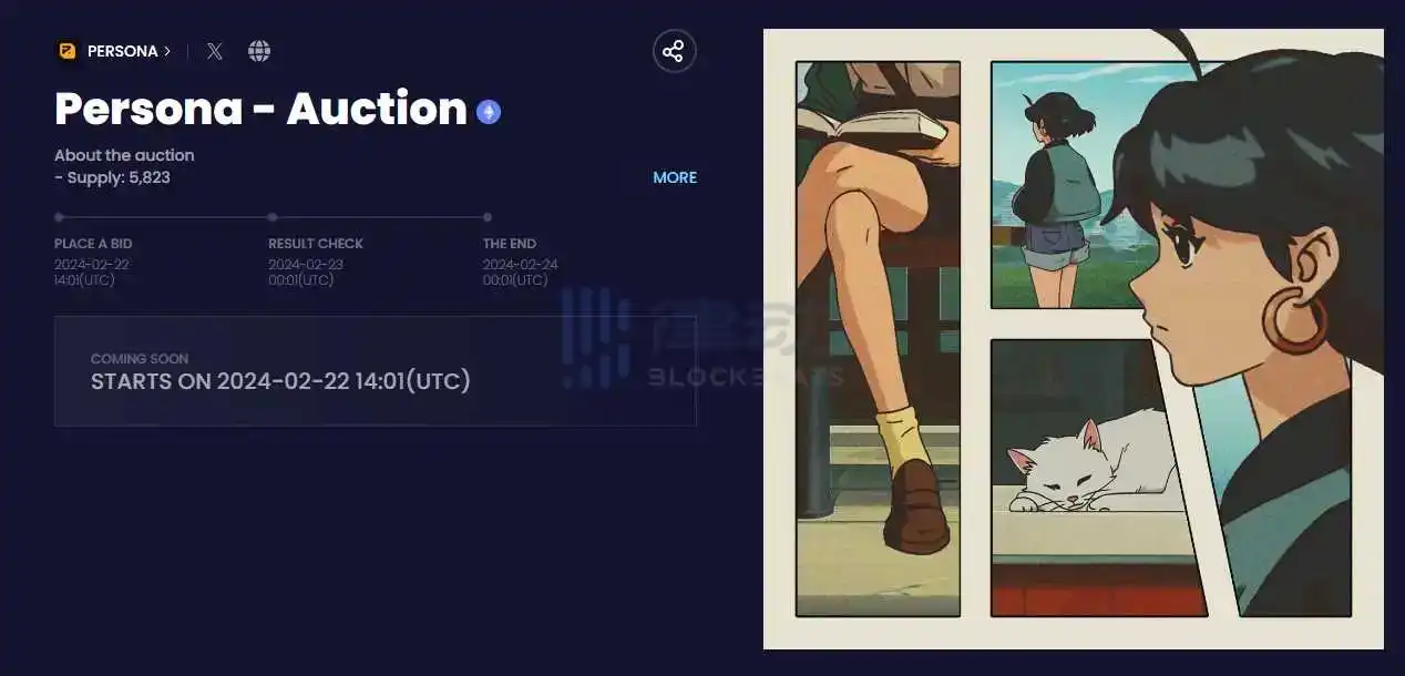 4. Persona 将于今晚 22:01 开启公售,竞拍区间为 0.069 至 0.29 ETH;