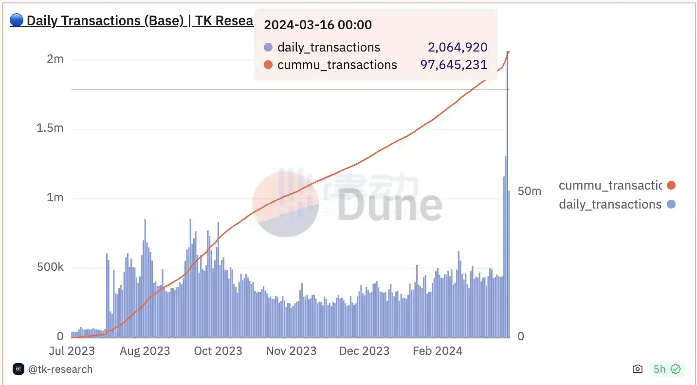 4.Base 日交易数在以太坊坎昆升级后飙升至 200 万笔,创历史新高;