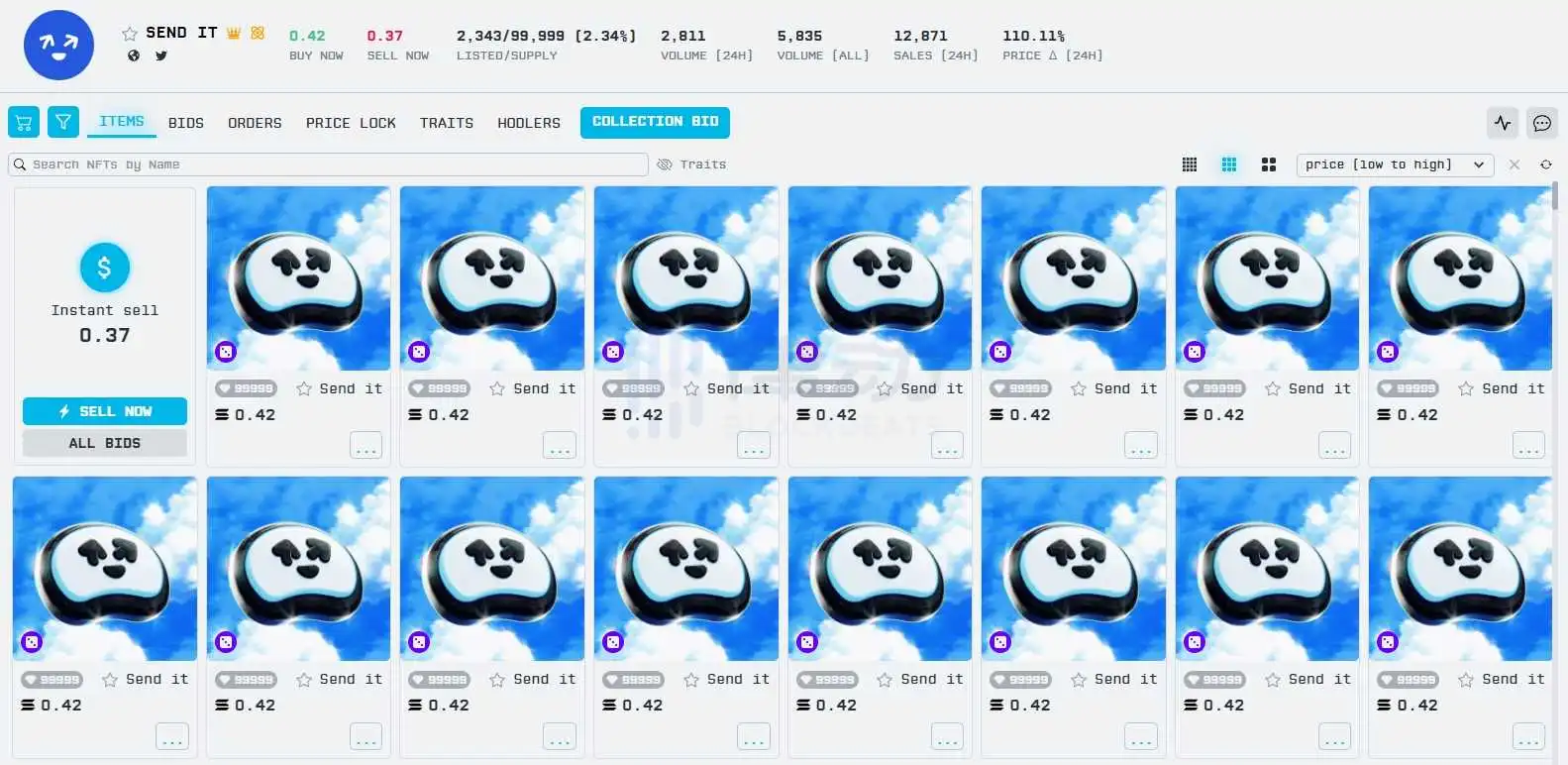 Solana Blinks生态meme项目SEND NFT现报0.42 SOL,24小时涨幅达110%