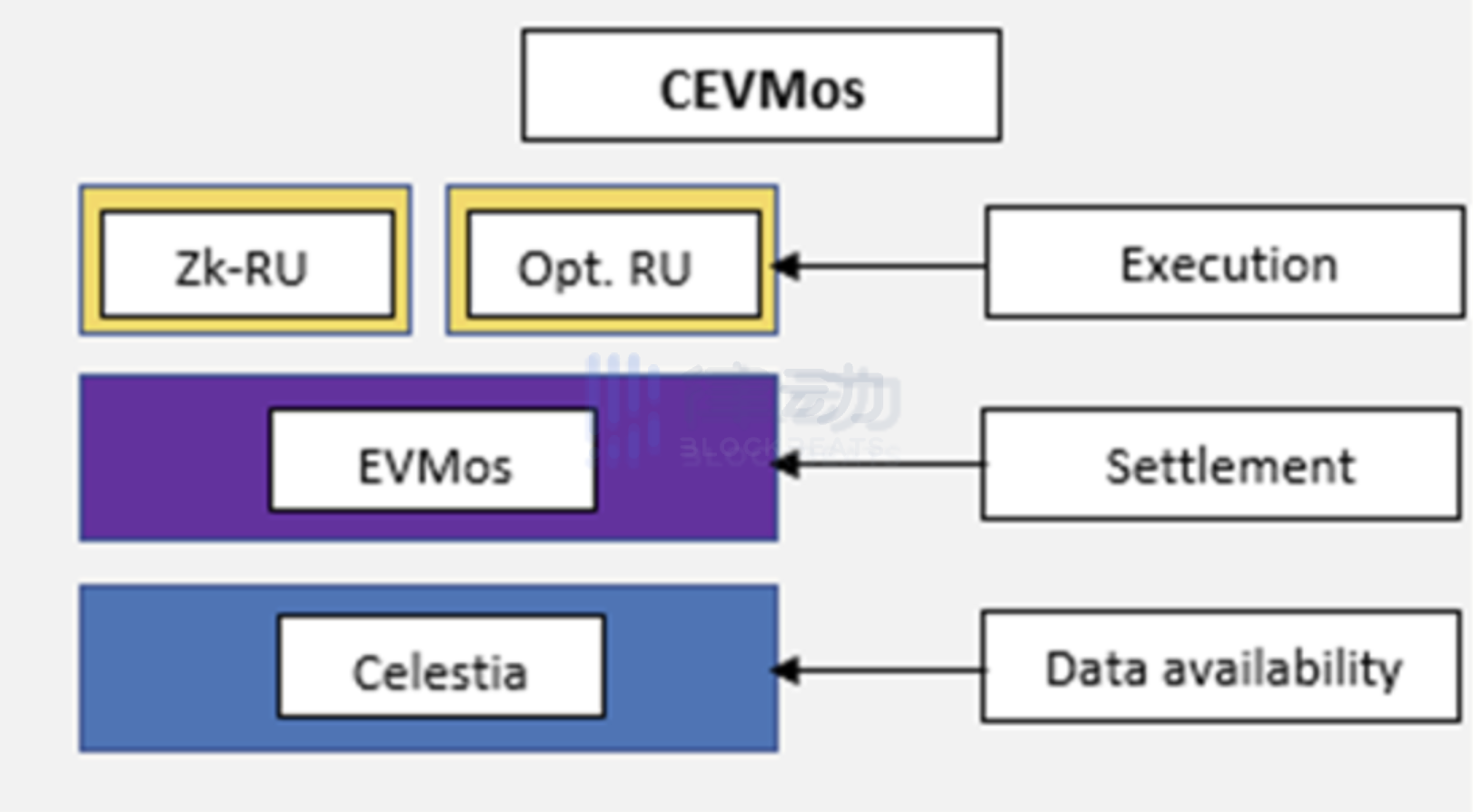Under the two-way pincer offensive, it has established a foothold in multi-chain ecology, but it is not here. COSMOS and the powerful Guanzhong Garrison with a clear vision. CELESTIA is a public link built using the COSMOS SDK to provide data availability, and other developers build their own settlement layer on CELESTIA in the form of Rollups. CEVMOS is a collaboration between two teams, CELESTIA and EVMOS, aiming for the longer term future to solve interoperability and scalability problems in a modular way. Modular narrative logic is also the first theoretical solution to the holy grail of blockchain scalability problems.