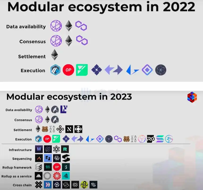 · Bybit-incubated Mantle launches Alpha Mainnet.· Following OP Stack and Arbitrum Orbit, Starknet has also released its own Starknet Appchains https://twitter.com/Starknet/status/1681603967787122688?s=20.Starting from around 2020, the trend of modularity in Ethereum can be foreseen with the establishment of the Ethereum Rollup-Centric roadmap. This Ethereum scaling method, which uses Rollup to handle transaction loads, breaks down the components of the all-powerful (Monolithic) chain and distributes them to the modular chain system. Vitalik referred to this as Ethereum's Endgame. (Subsequently, the term Endgame also became a hot topic in Web3 and was frequently repeated, such as in MakerDao.)