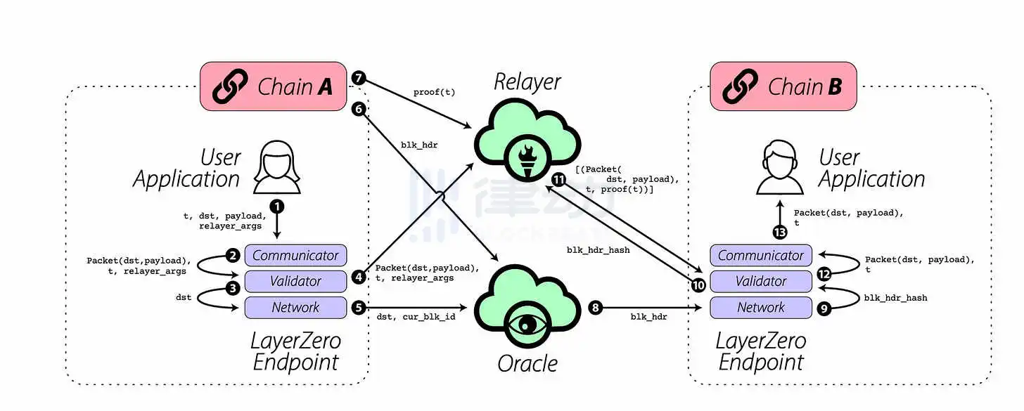 Do you cross-chain project insiders feel familiar with the architecture in the above picture? The following picture is the structure diagram of Layerzero, which is currently valued at 3 billion US dollars: Layerzero's structure diagram.