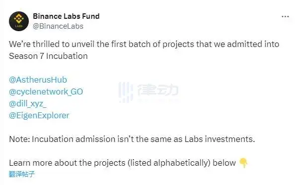 Binance Labs Fund announces the first batch of projects to be incubated in the seventh season