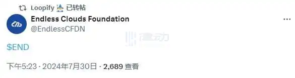 BlockBeats reported that on July 30, the founder of blockchain game developer Endless Clouds, Loopify, followed an account named "Endless Clouds Foundation" on the social platform and retweeted its tweet "$END", suggesting that Endless Clouds may issue token END.