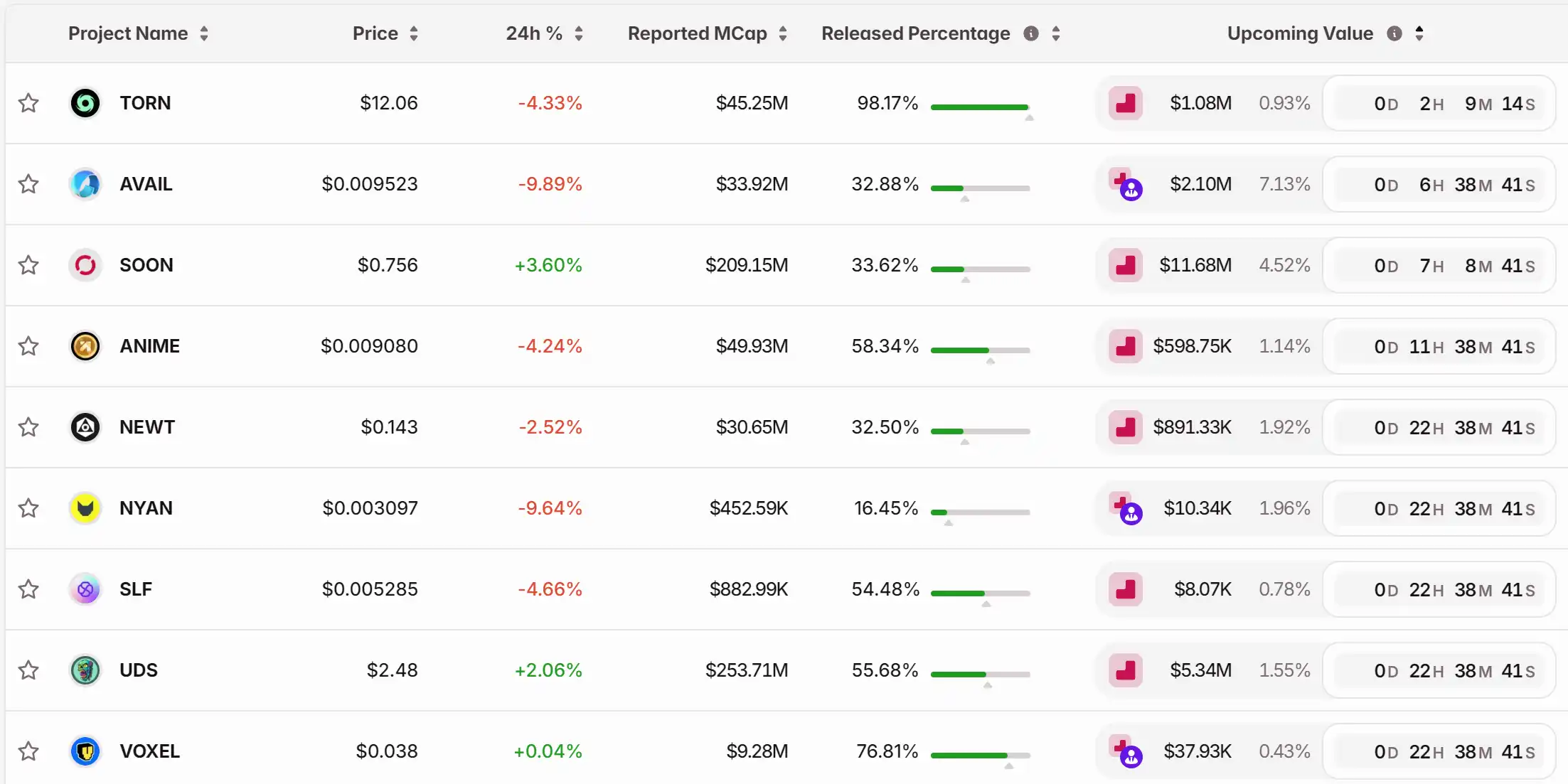 Daily Market Overall Funding Heatmap (as reflected by Funding Rate) and Token Unlocks