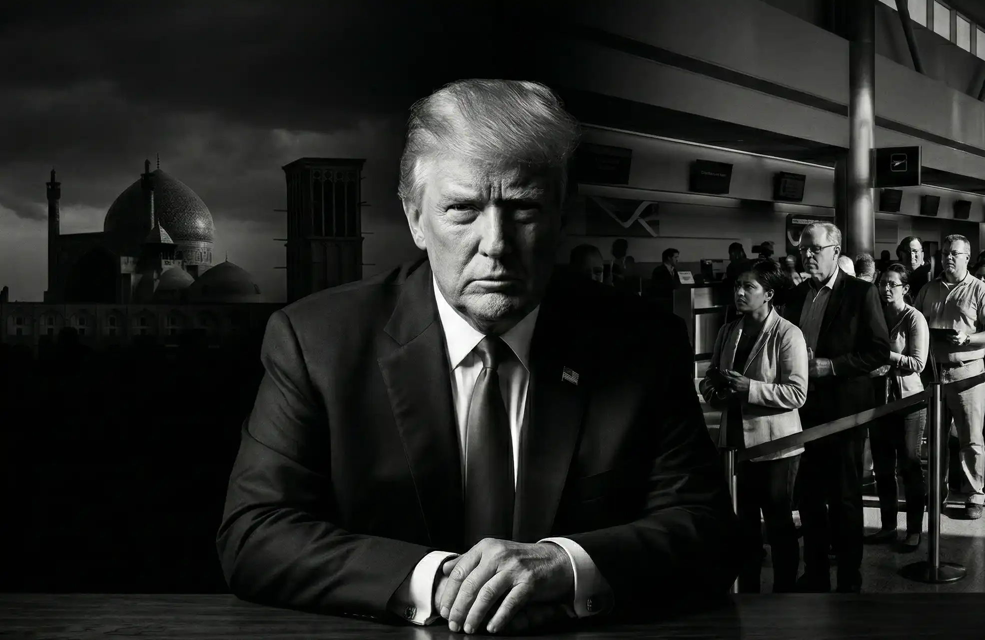 好战分子特朗普已经忘了在机场排队几小时的美国人