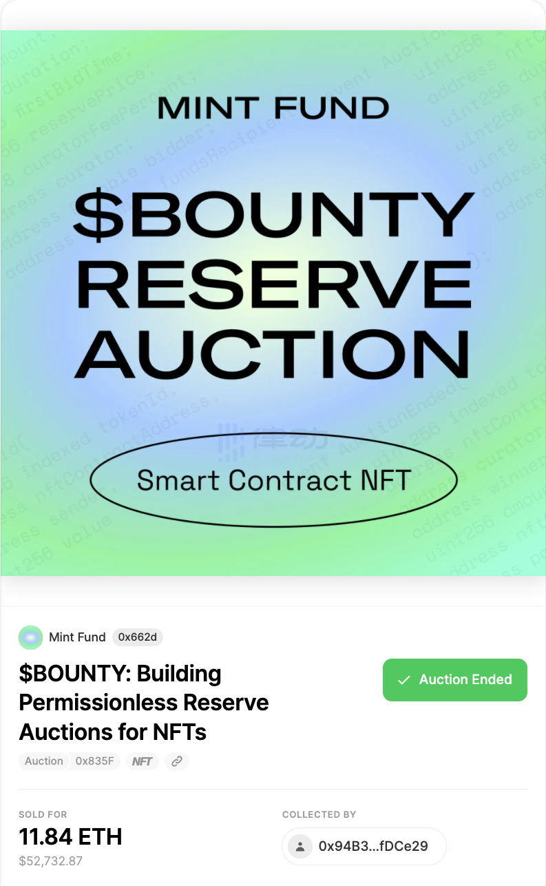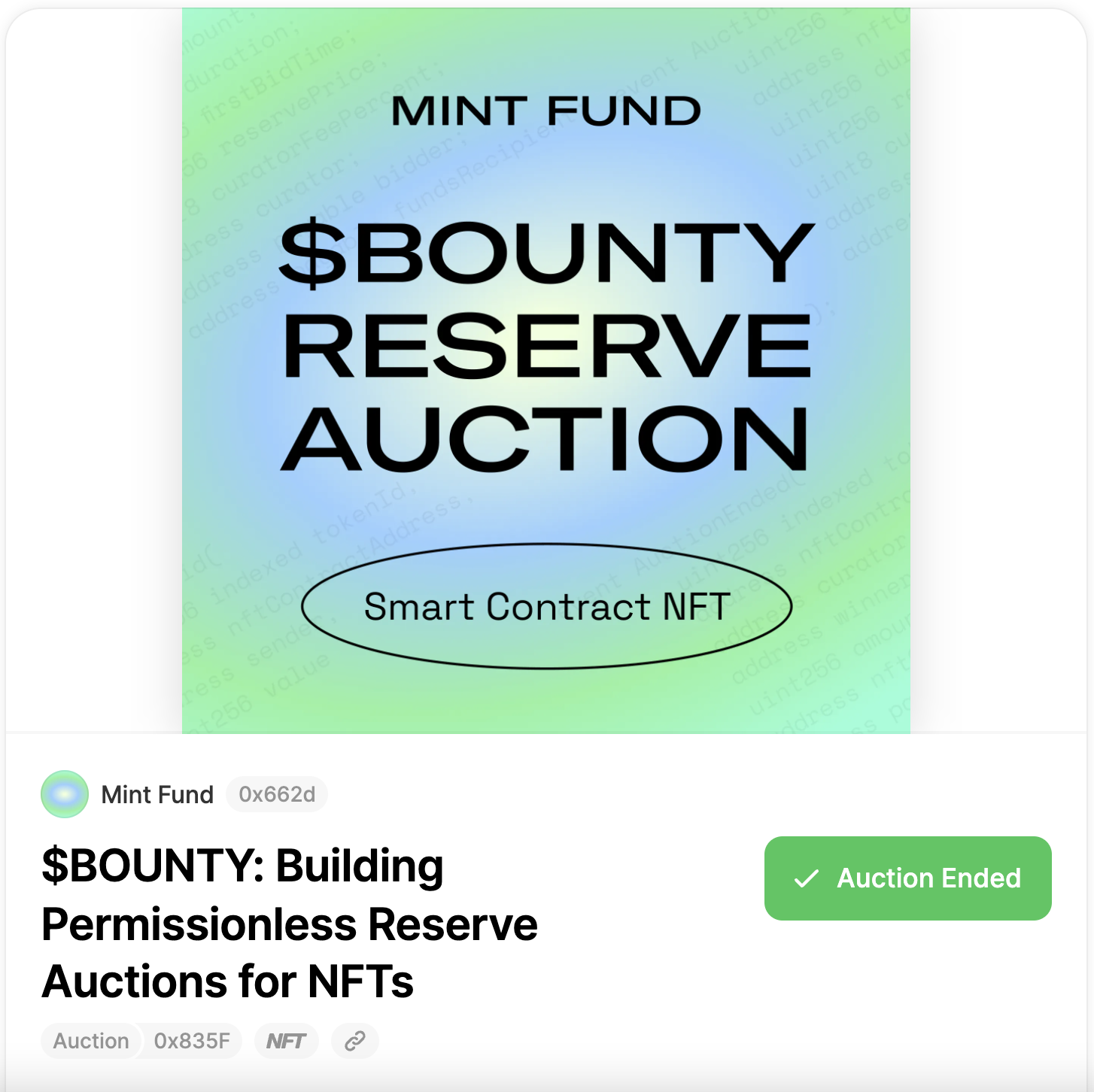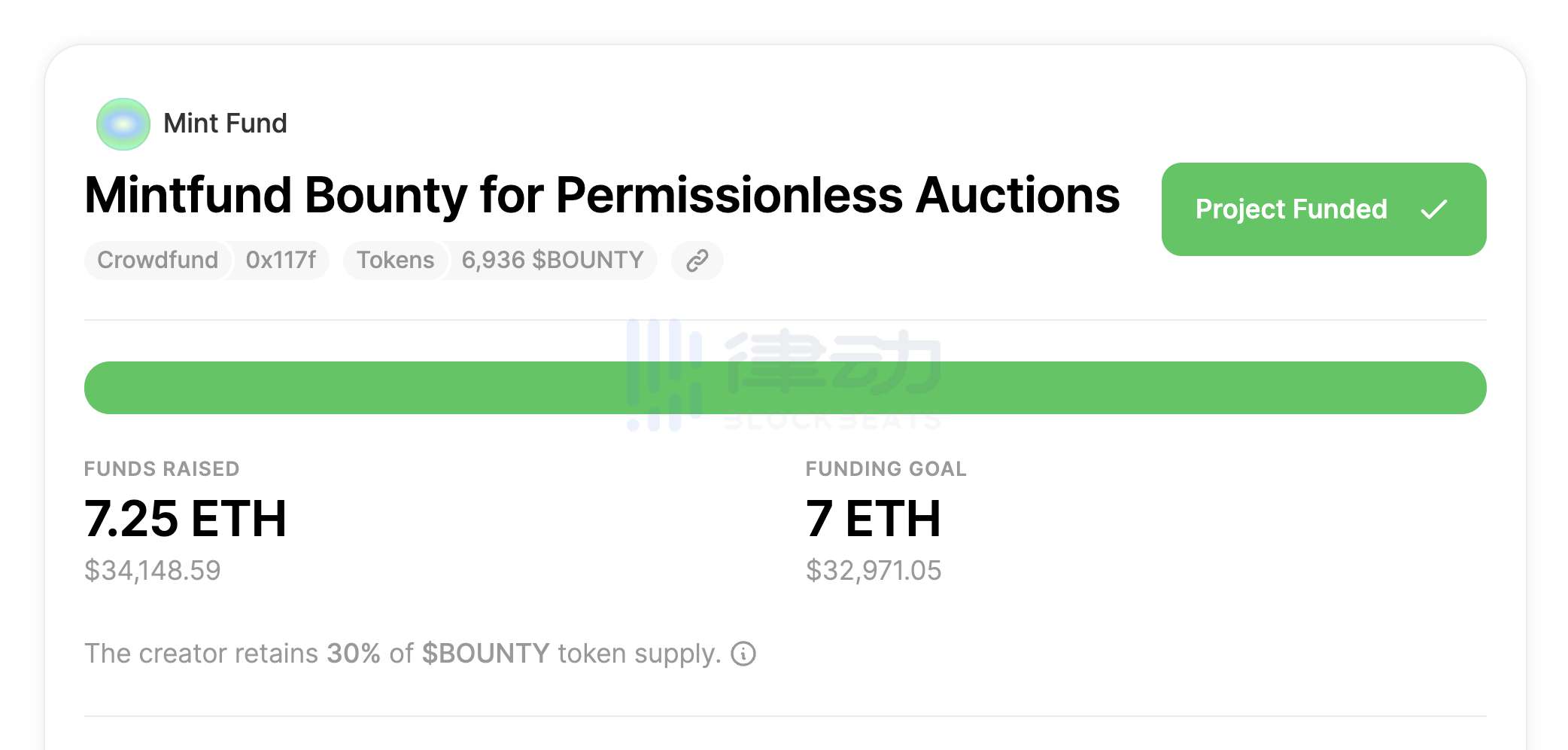 例如,这里是$BOUNTY 的众筹模块。它也在 Mint Fund 上发表了,而且它最初是在那里诞生的。