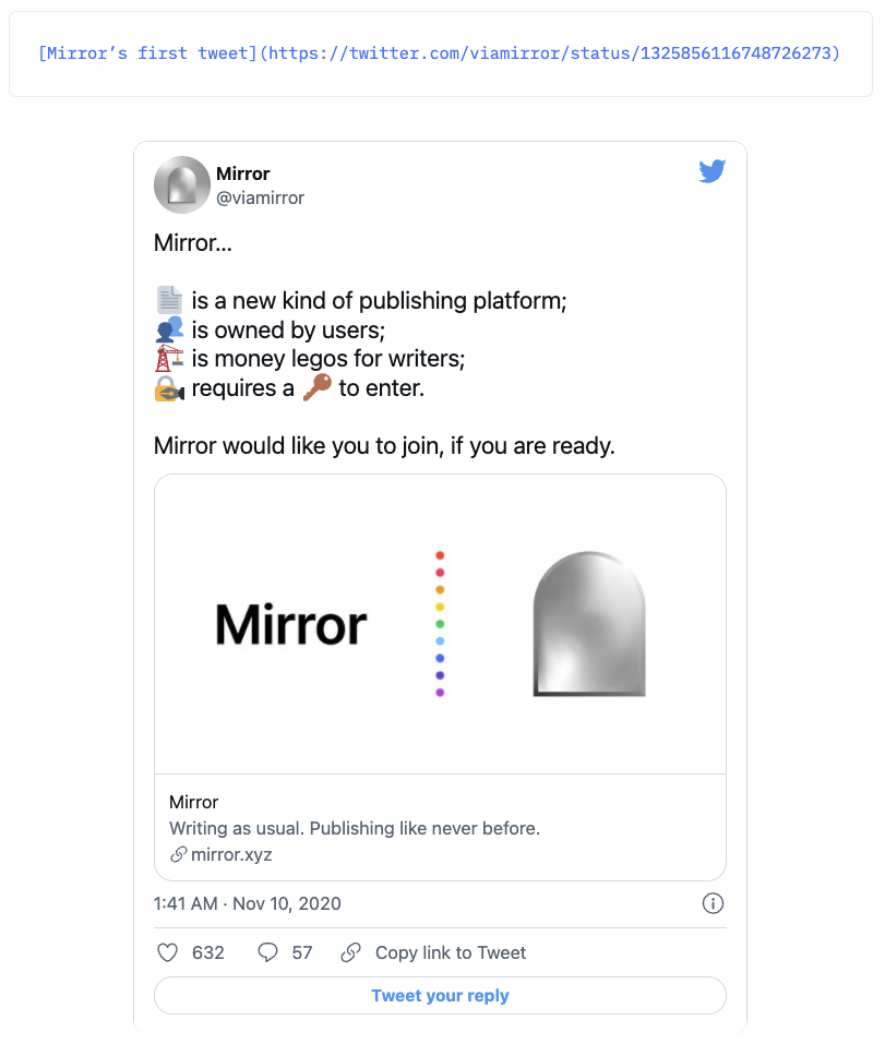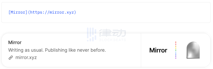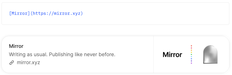 Mirror 显示的是基于 OpenGraph 标签通用标准的所有链接的渐进式增强预览。